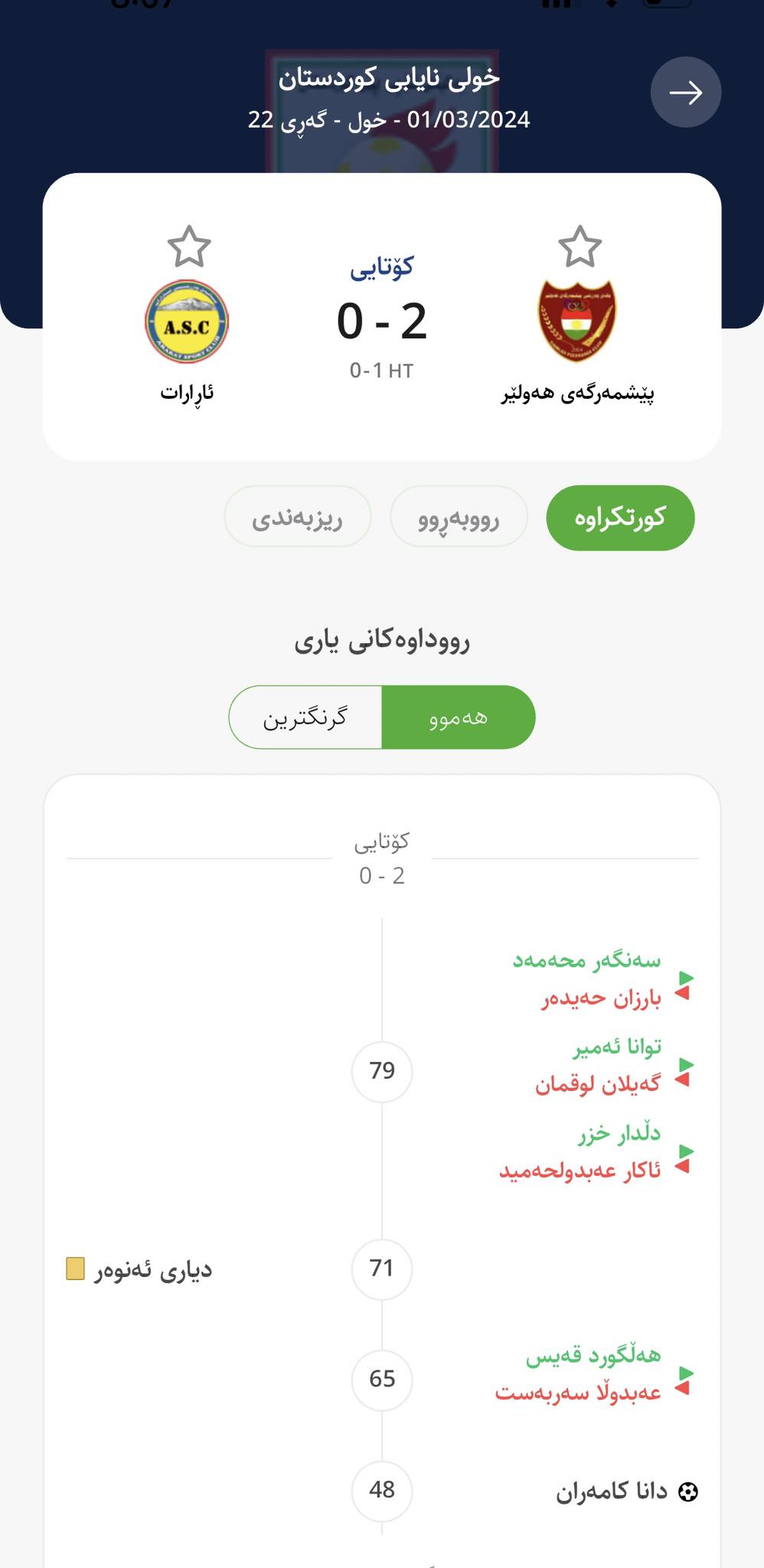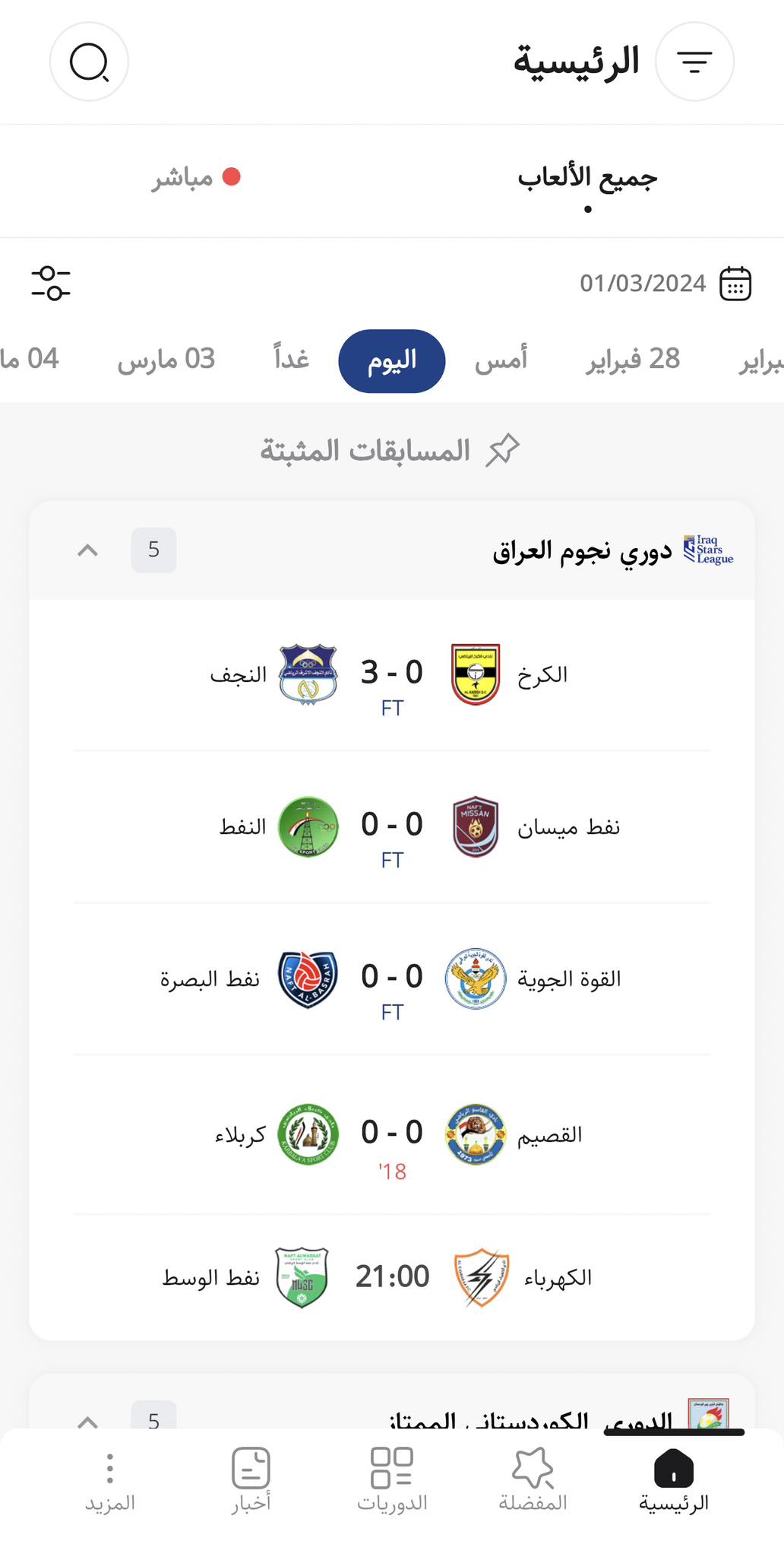 لەسەر ئاستی کوردستانیش، سات بە سات ئەنجام رووداوی یارییەکان و ریزبەندی خولی نایابی کوردستان، خولی پلە یەکی کوردستان، خولی پلە دووی کوردستان، جامی کوردستان، جامی سوپەری کوردستان، خولی فوتساڵی خانمانی کوردستان بەردەست دەبن.