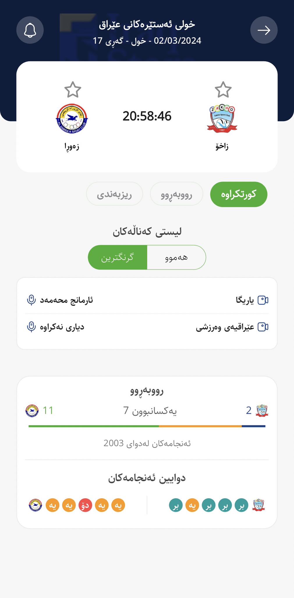 لە ئەپلیکەیشنی یاریگا، خشتەی ئەو کەناڵ و سۆشیاڵ میدیا و کۆمێنتارانەی یارییەکانی خولە ناوخۆییەکانی کوردستان و عێراق دەگوازنەوە، رۆژانە بڵاو دەکرێتەوە و دوای کۆتایی هاتنی یارییەکانیش کورتکراوە و ڤیدیۆی گۆڵەکانی یارییەکان لە ئەپلیکەیشنی یاریگا بەردەست دەبن.
