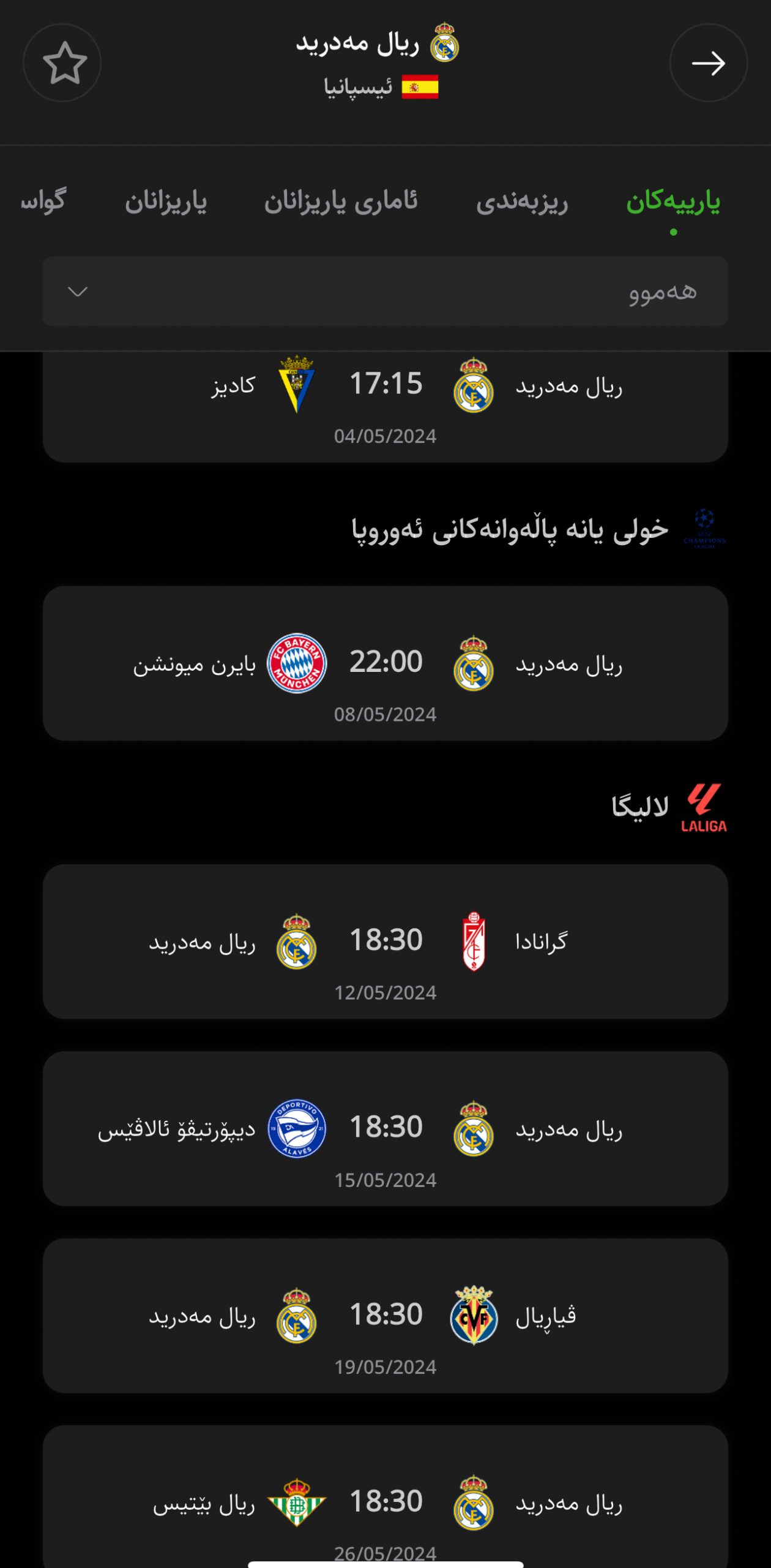 یارییەکانی ریال مەدرید لەگەڵ کێن؟