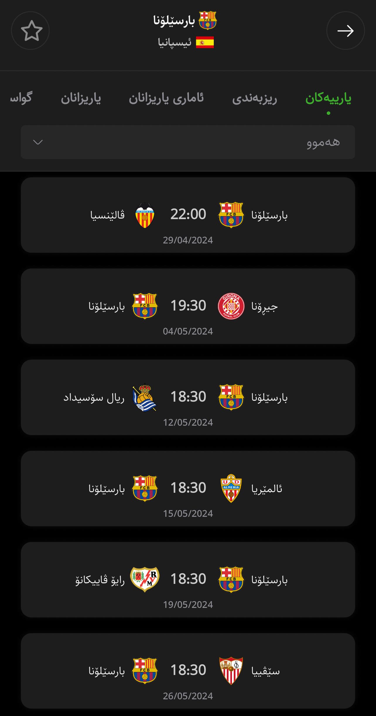 یارییەکانی بارسێلۆنا لەگەڵ کێن؟