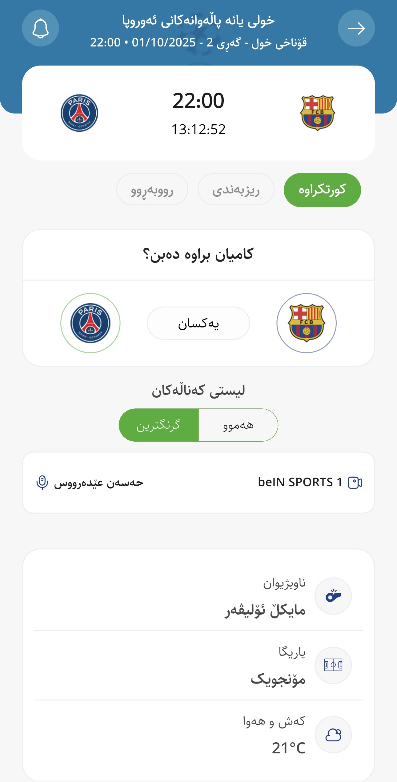 ئەو دوو یانەیەی هەمووان چاوەڕوان بوون لە یاریی كۆتایی چامپیۆنزلیگی 2024/2025 رووبەڕووی یەک ببنەوە ئێستا لە قۆناخی كۆمەڵەكان بەرامبەر یەک یاریی دەكەن.