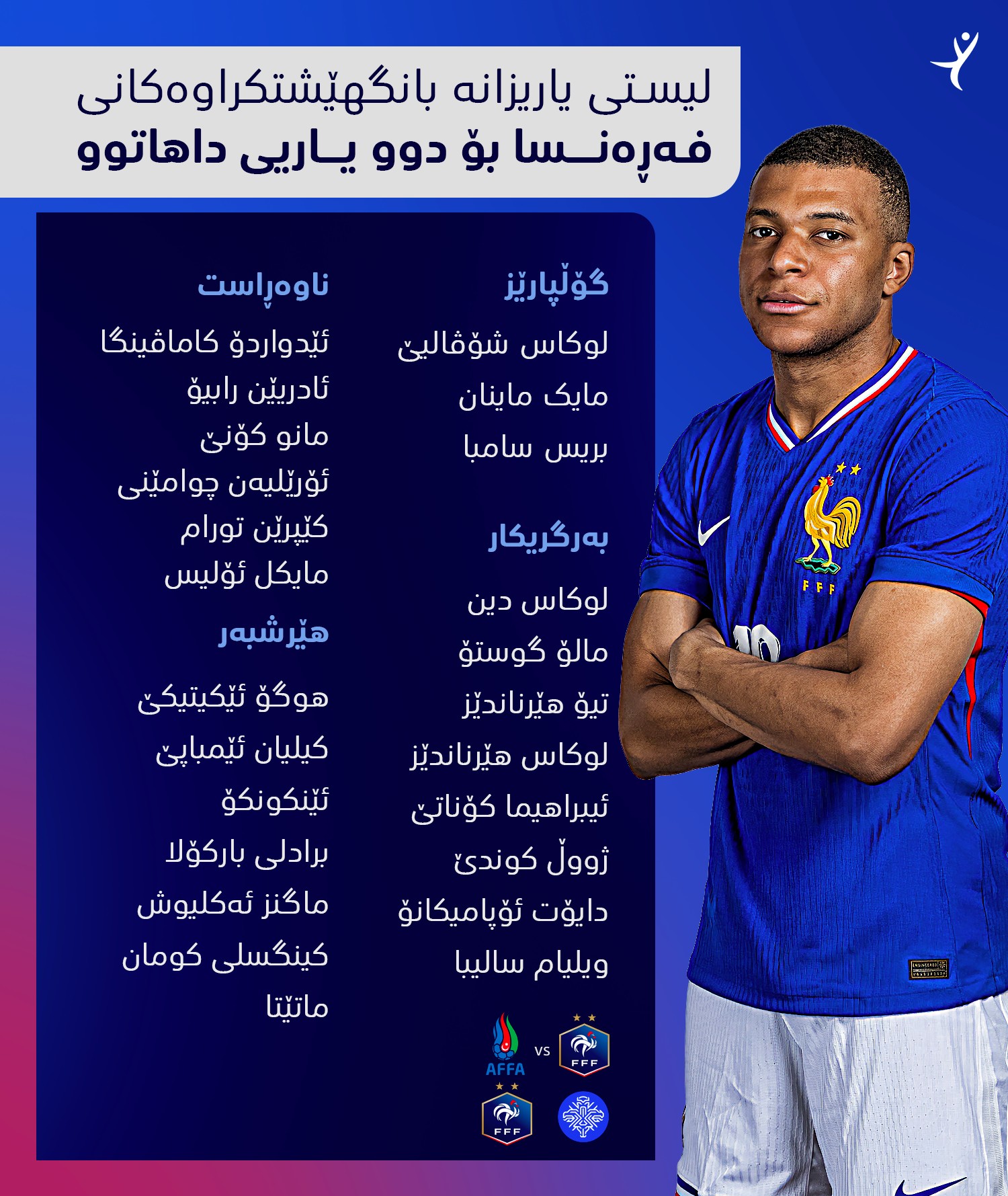 لیستی یاریزانە بانگهێشتکراوەکانی فەڕەنسا بۆ دوو یاریی داهاتووی هەڵبژاردەکە لە پاڵاوتنەکانی جامی جیهانی بڵاوکرایەوە.