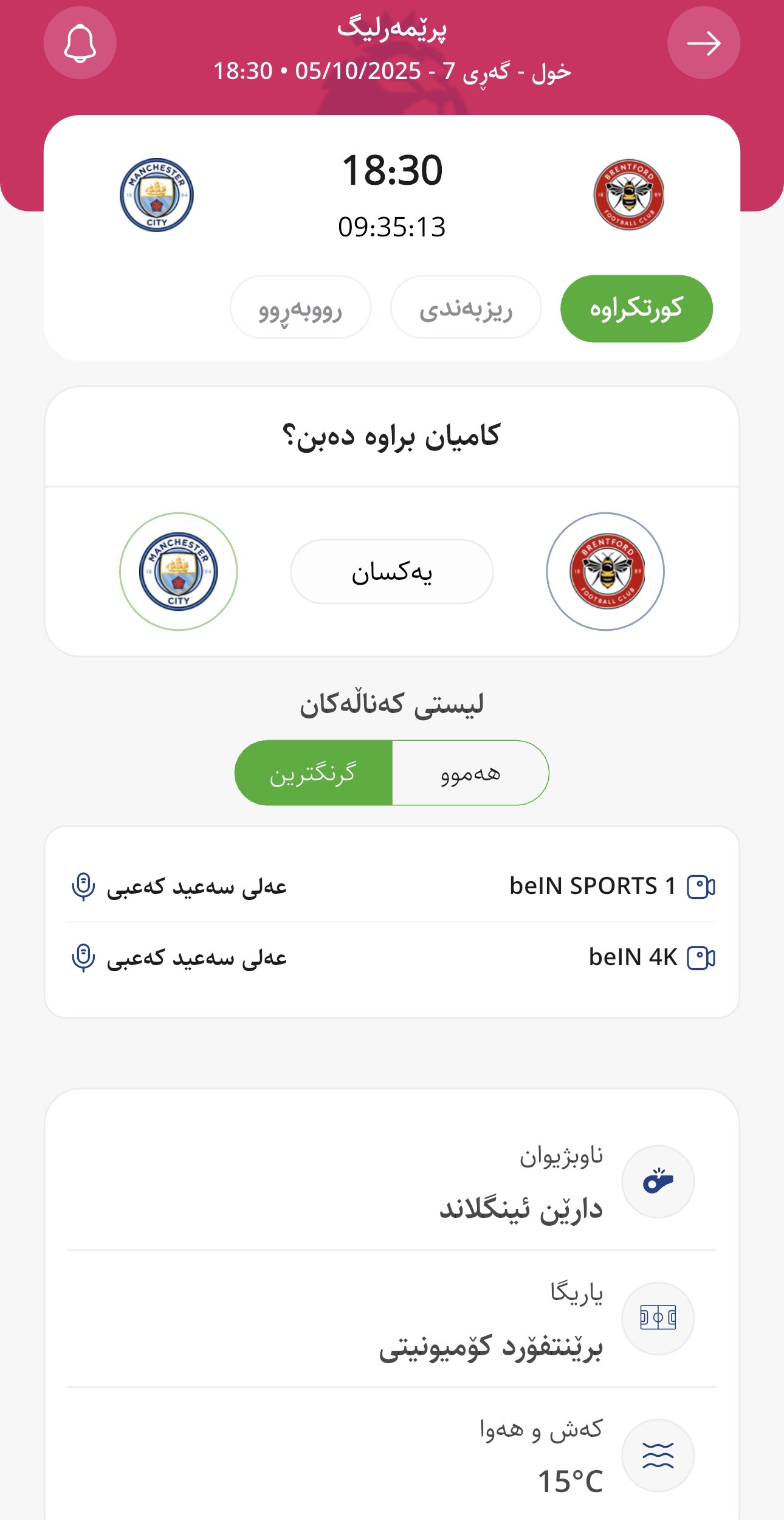 وا بڕیارە ئەمڕۆ یەكشەممە كاتژمێر 18:30 بە كاتی كوردستان برێنتفۆرد لە یاریگای تایبەت بە خۆی میوانداری مانچێستەر سیتی بكات، لە میانی یارییەكانی گەڕی حەوتەمی پرێمەرلیگ.