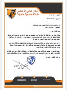 لە دوایین رۆژی یارییەکانی گەڕی چوارەمی خولی ئەستێرەکانی عێڕاق، مووسڵ و دیالا لە یاریگای دهۆک 2-2 یەکسان بوون، لەو یارییەدا یانەی مووسڵ حەفت یاریزانی پیشەگەری لە یەک کاتدا یاریی پێکرد، ئەمەش پێچەوانەی یاساکانی تۆپی پێی عێڕاقە، بۆیە دیالا بە نووسراوی فەرمی پەڵپی گرتووە و داوا دەکات یارییەکەیان 3-0 بۆ هەژمار بکرێت.