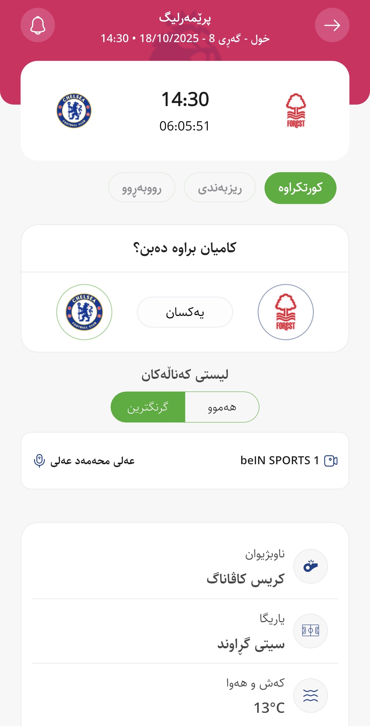 وا بڕیارە ئەمڕۆ شەممە كاتژمێر 14:30 نۆتینگهام لە یاریگای سیتی گڕاندی تایبەت بە خۆی میوانداری چێڵسی بكات، لە میانی یارییەكانی گەڕی هەشتەمی پرێمەرلیگ.