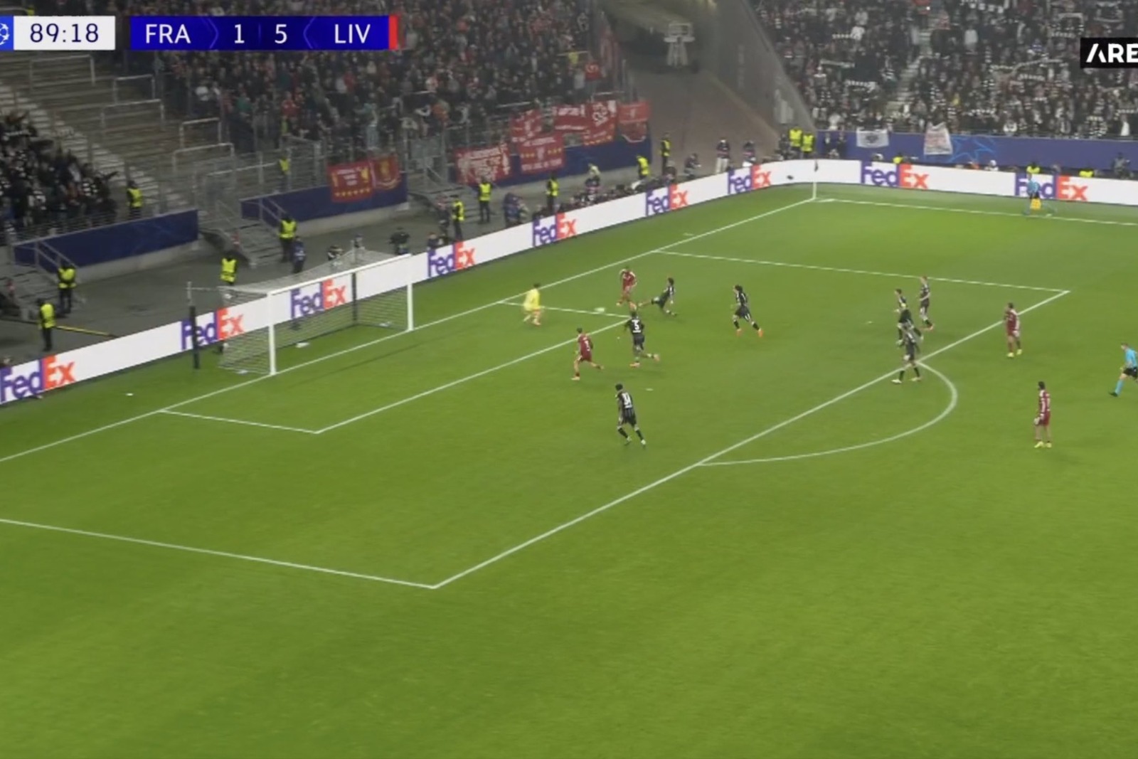 لە خوولەکی 90دا، سەڵاح بە تەنیا رووبەڕووی گۆڵپارێزی فڕانکفورت بووەوە، ڤیرتز بە تەنیا لە نزیک گۆڵ داوای پاسی کرد تاوەکو یەکەم گۆڵ بە درێسی لیڤەرپوول بکات، بەڵام سەڵاح پاسەکەی نەدا و خۆیشی گۆڵی نەکرد.