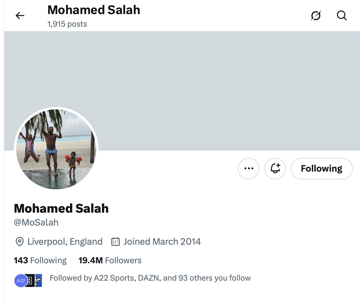 دوای تەواوبوونی یارییەکە، سەڵاح وێنەی بانەری پلاتفۆڕمی ئێکس هەر لاداوە، پێشتر وێنەی خۆی بە درێسی لیڤەرپوولی لەسەربوو، هەروەها وێنەی پڕۆفایڵەکەشی گۆڕی و وێنەی کچەکانی داناوە.