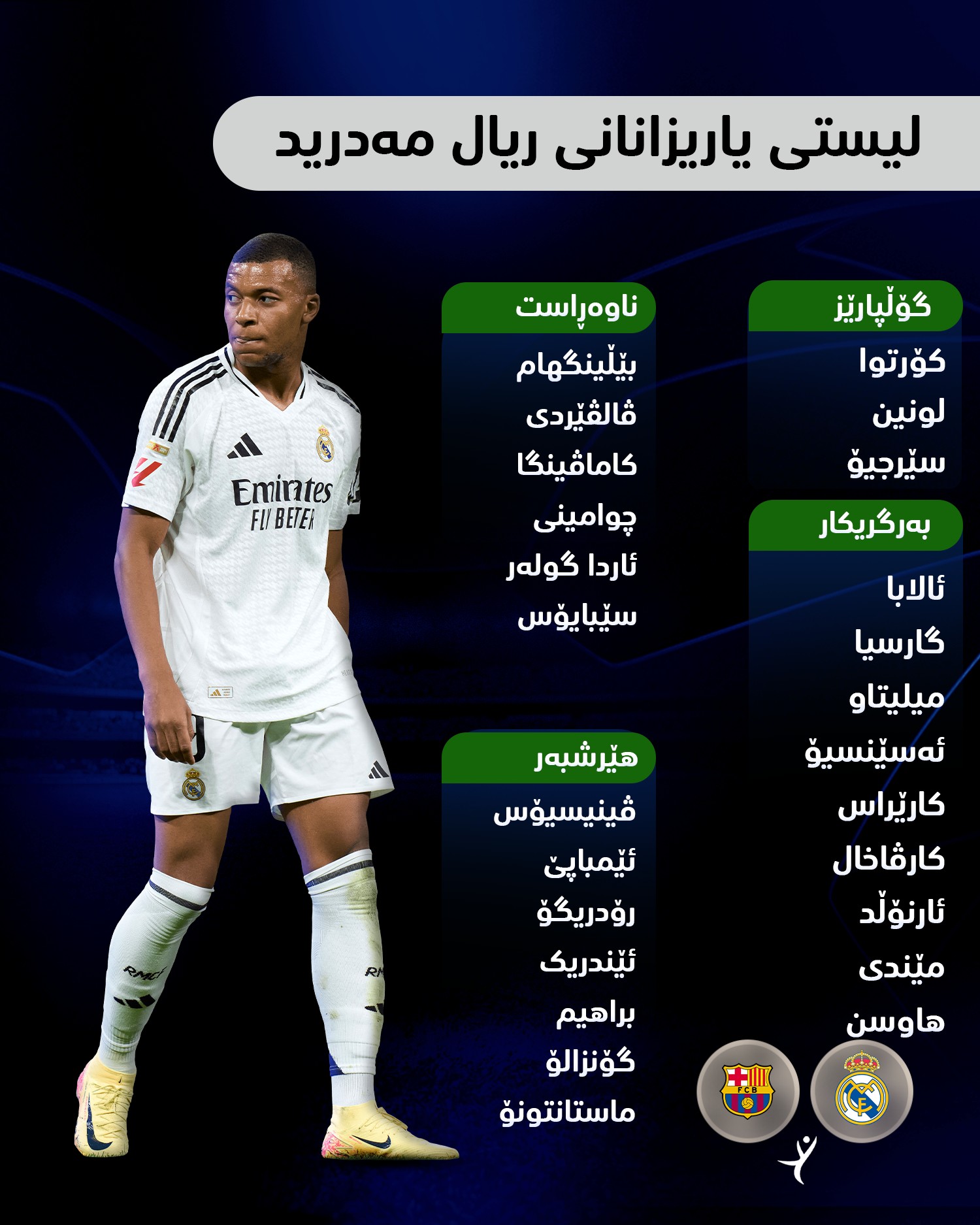 بەشێوەیەکی فەرمی لیستی یاریزانانی ریال مەدرید بۆ کلاسیکۆ ئاشکرا دەکرێت و زۆرینەی ئەستێرەکان گەڕاونەتەوە.