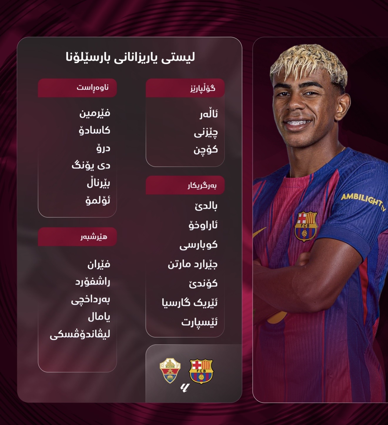 هانزی فلیک، راهێنەری ئەڵمانی یانەی بارسێلۆنای ئیسپانی لیستی یاریزانە بانگهێشتكراوەكانی یانەكەی بۆ یارییەكەی بەرامبەر ئێڵچی بڵاوكردەوە.