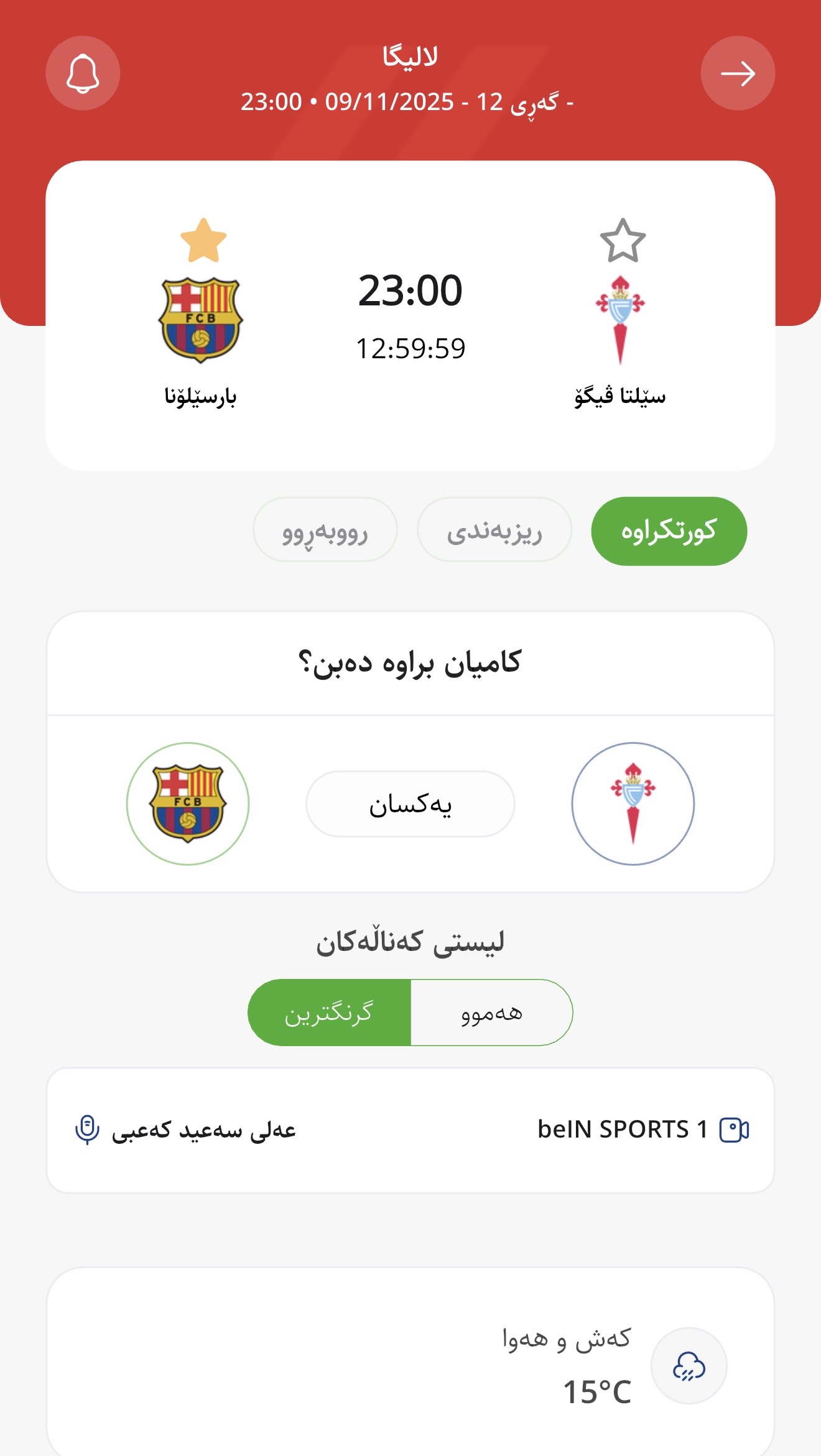 وا بڕیارە ئەمڕۆ یەكشەممە كاتژمێر 23:00 بە كاتی كوردستان سێلتا ڤیگۆ لە یاریگای تایبەت بە خۆی میوانداری بارسێلۆنای پاڵەوانی وەرزی رابردوو بكات، لە میانی یارییەكانی گەڕی دوازدەیەمی لالیگای ئیسپانیا.
