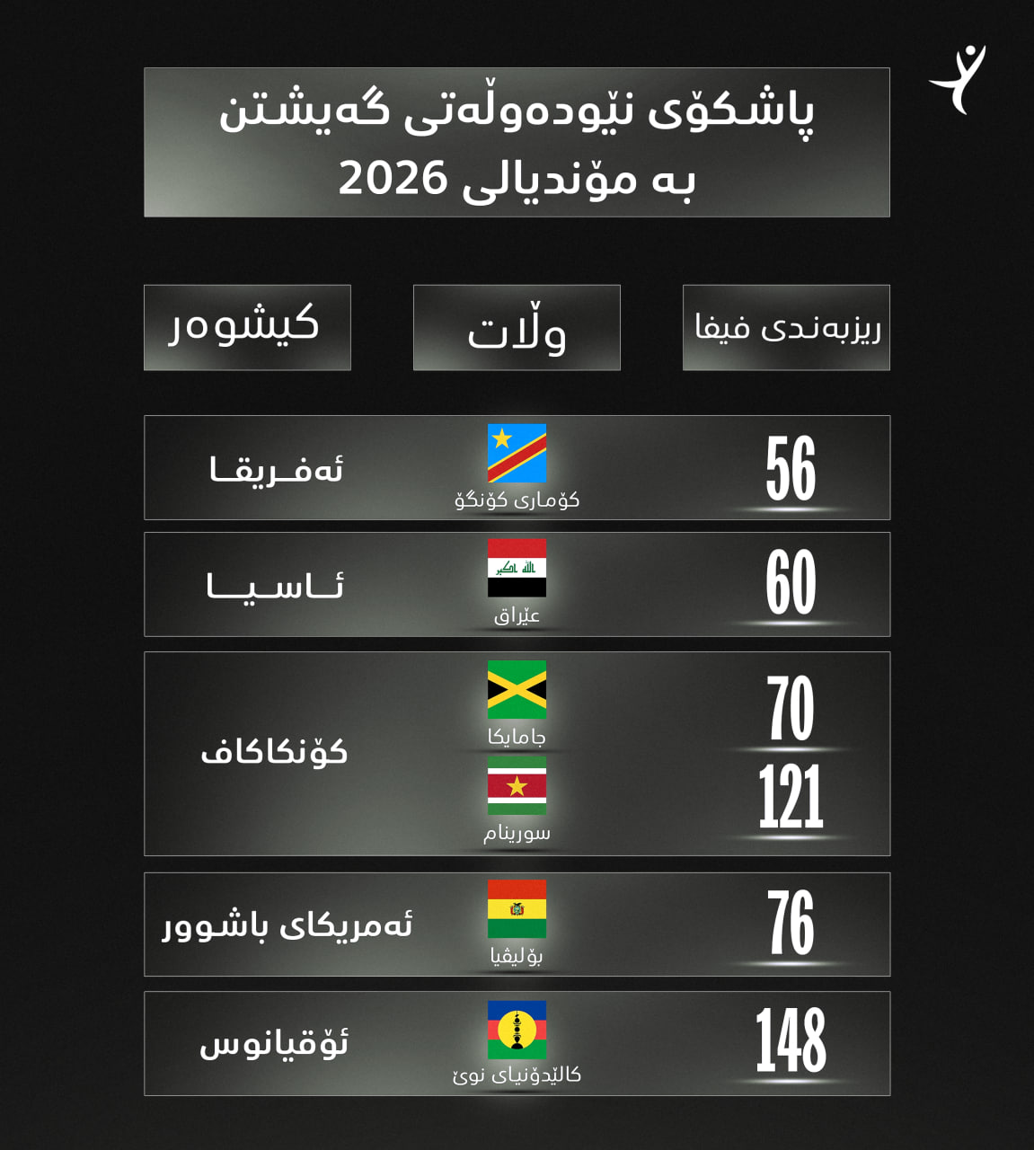 براوەی دوو یارییە کۆتاییەکە ڕاستەوخۆ دوو بلیتەکەی جامی جیھانی 2026 بەدەست دەھێنن، واتە عێراق تەنبا یەک یاریی ماوە بۆ گەیشتن بە جامی جیھانی! تەنبا پێویستە لە یارییە کۆتاییەکەی خۆیدا براوە بێت.
