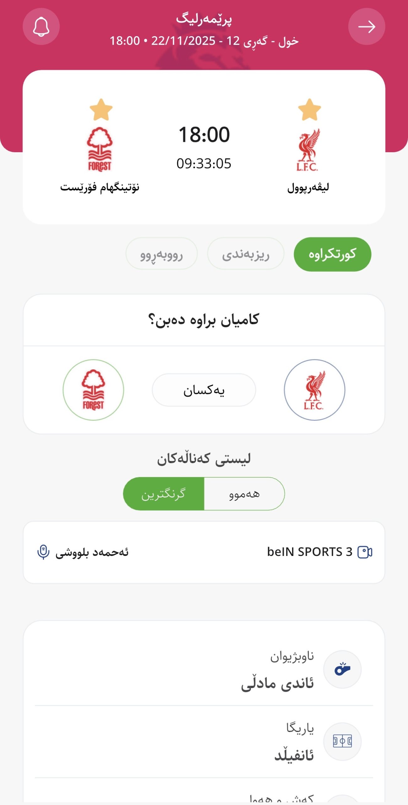 وا بڕیارە ئەمڕۆ كاتژمێر 18:00 بە كاتی هەولێر لیڤەرپوول لە یاریگای ئانفیڵدی تایبەت بە خۆی میوانداری نۆتینگهام فۆرێست بکات، لە میانی یارییەكانی گەڕی دوازدەیەمی پرێمەرلیگ.
