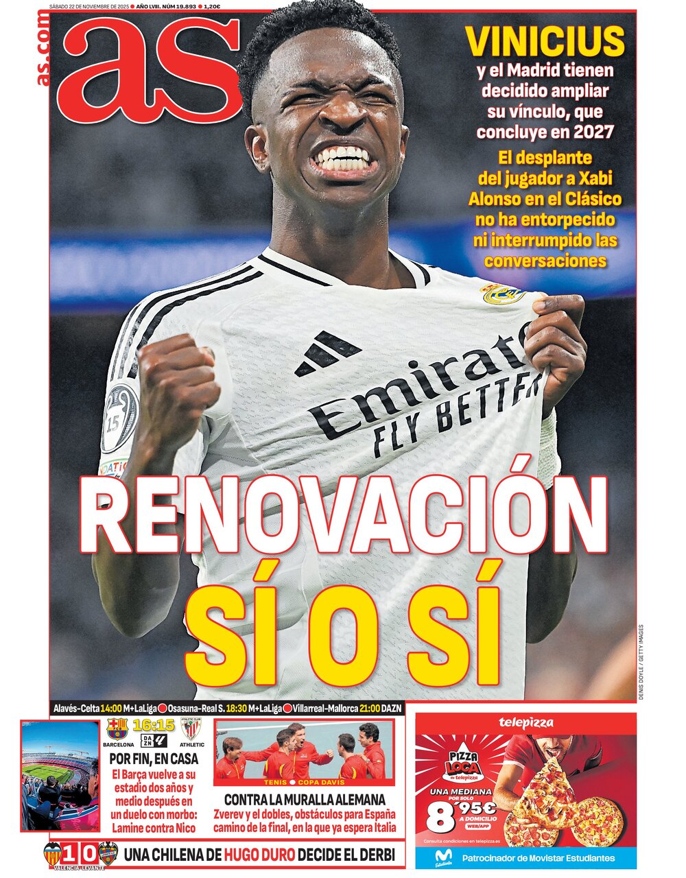 رۆژنامەی ئاس لە ژمارەی ئەمڕۆیدا بڵاویکردووەتەوە، ریال مەدرید و ڤینیسیۆس گەیشتنە رێککەوتنی کۆتایی و گرێبەستی ئەستێرە بەڕازیلییەکە نوێدەکرێتەوە.