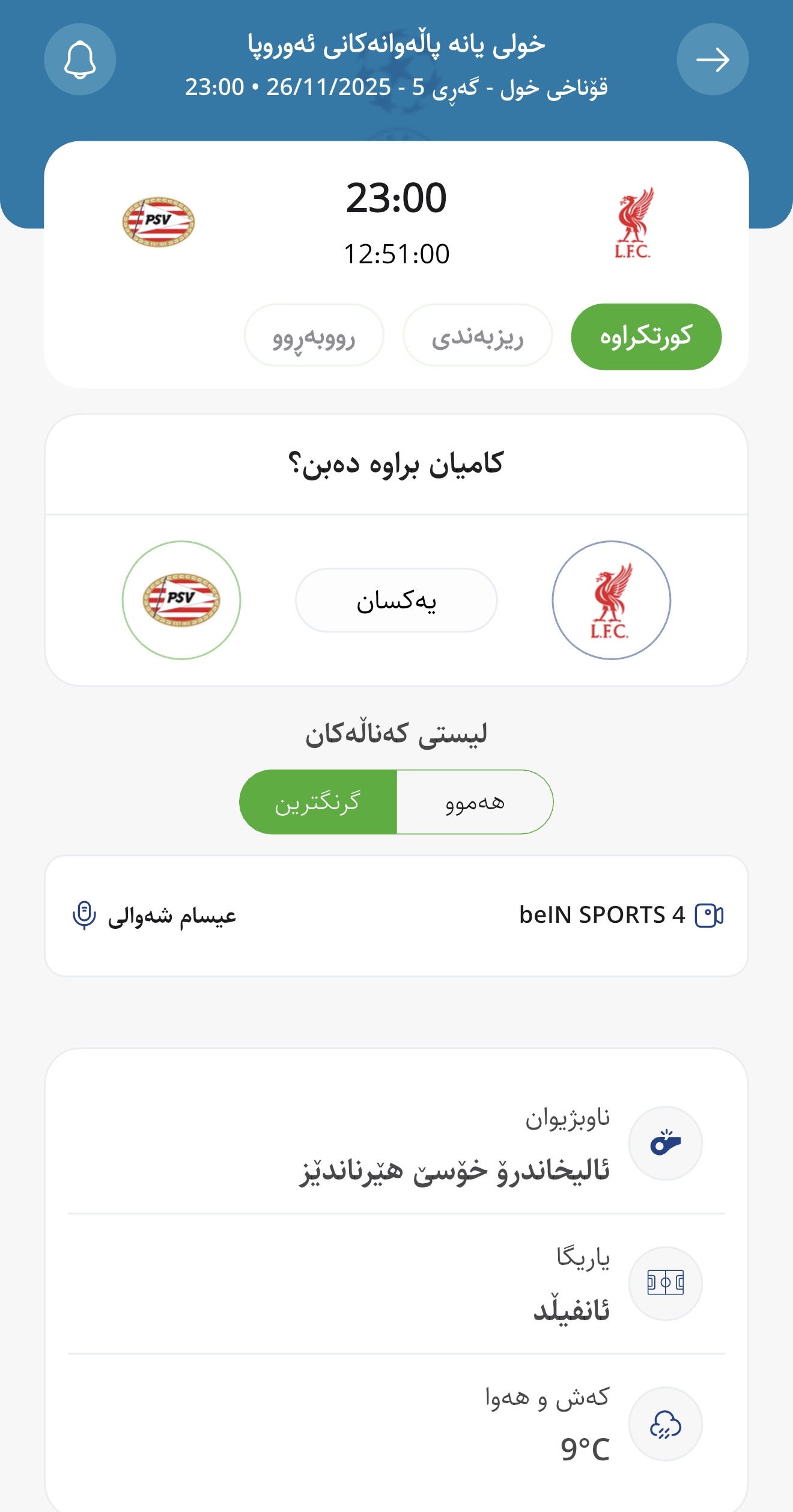 وا بڕیارە ئەمڕۆ چوارشەممە كاتژمێر 23:00 بە كاتی هەولێر لیڤەرپوول لە یاریگای ئانفیڵدی تایبەت بە خۆی میوانداری ئایندهۆڤن بكات، لە میانی یارییەكانی گەڕی پێنجەمی قۆناخی خول – چامپیۆنزلیگ.