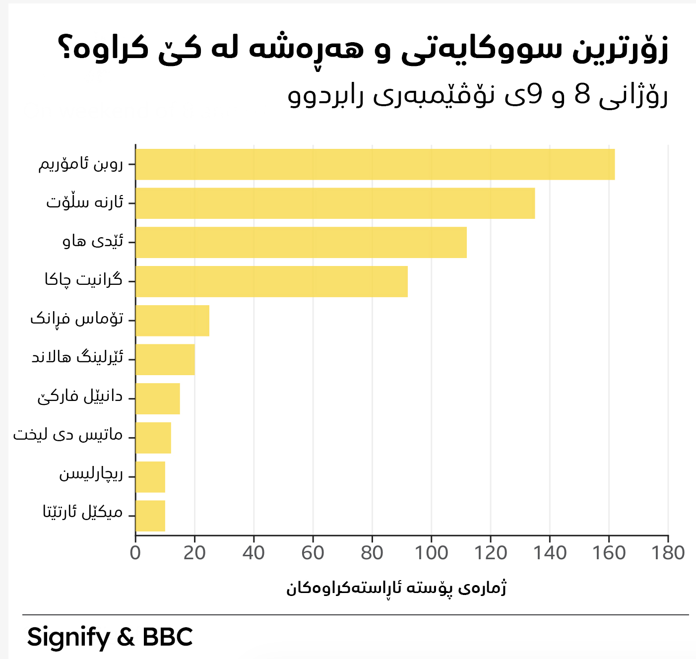 دەستەی ئێزگەی بەریتانیا BBC لێکۆڵینەوەیەکی رۆژنامەوانی بە هاوبەشی لەگەڵ کۆمپانیای شیکردنەوەی داتا ‘Signify’ی لەبارەی هەڕەشەی سەر یاریزانان و راهێنەرانی پرێمەرلیگ کردووە.