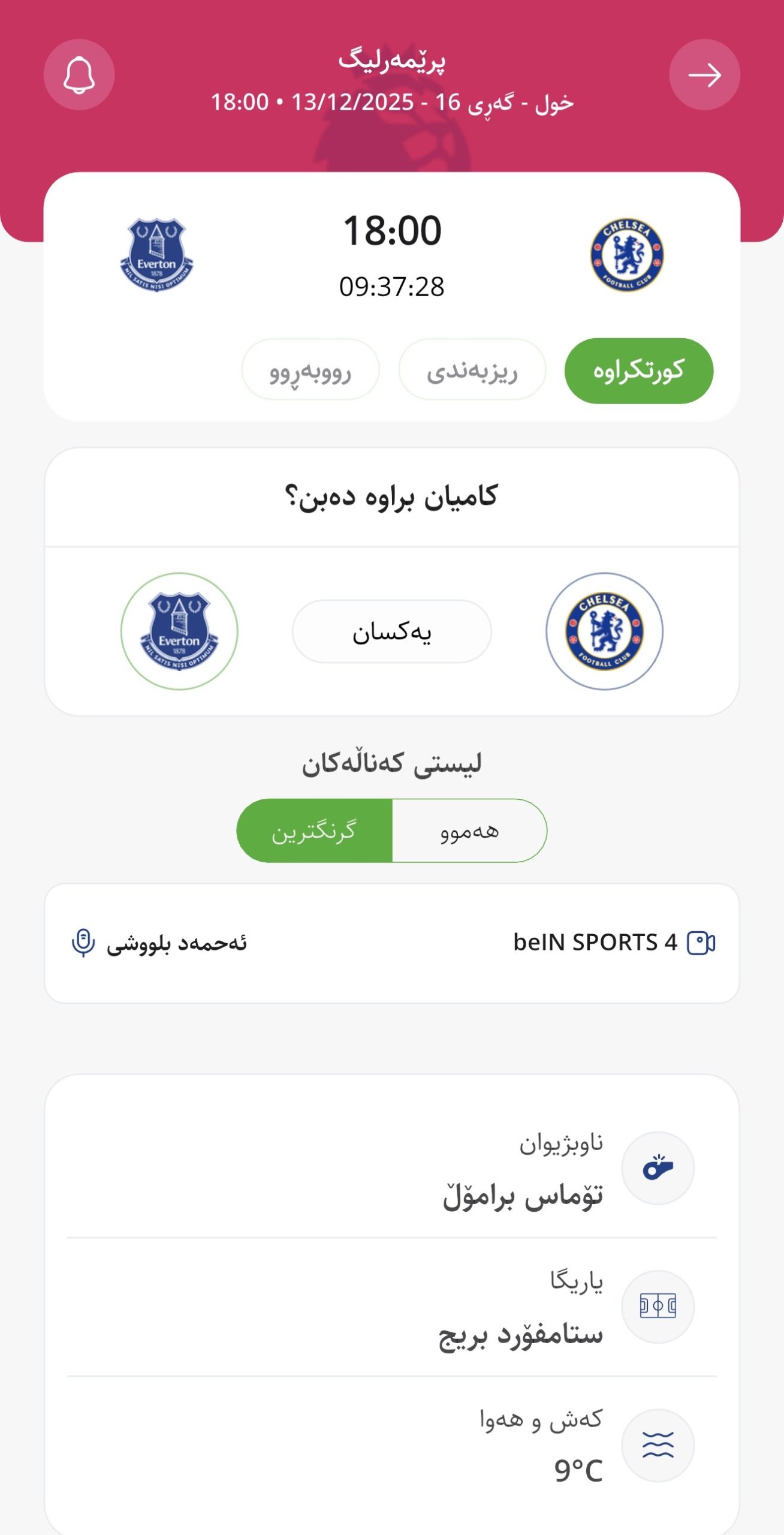 وا بڕیارە ئەمڕۆ شەممە كاتژمێر 18:00 بە كاتی هەولێر چێڵسی لە یاریگای ستامفۆرد بریجی تایبەت بە خۆی میوانداری ئێڤەرتن بكات، لە میانی یارییەكانی گەڕی شازدەیەمی پرێمەرلیگ.
