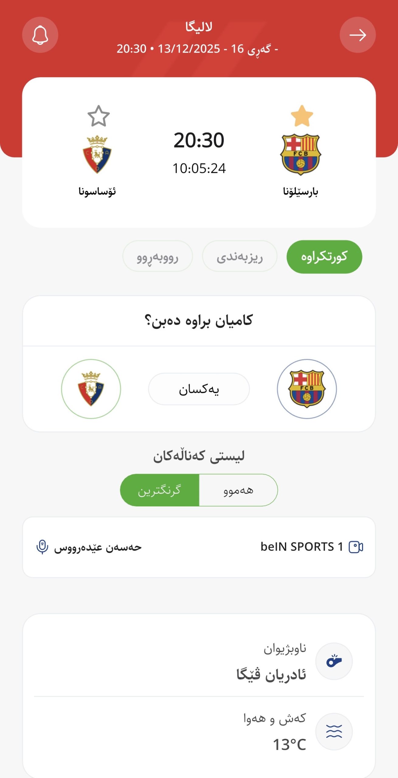 ئەمڕۆ لە یارییەكی گەڕی شازدەیەمی لالیگا بارسێلۆنا لە یاریگای خۆیدا میوانداری ئۆساسونا دەكات.