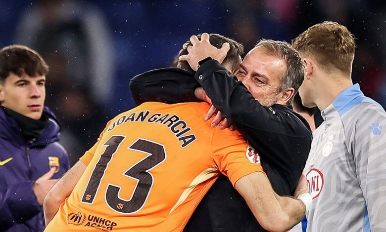 Hansi flick celebrating Joan Garcia after the match 👏🔥