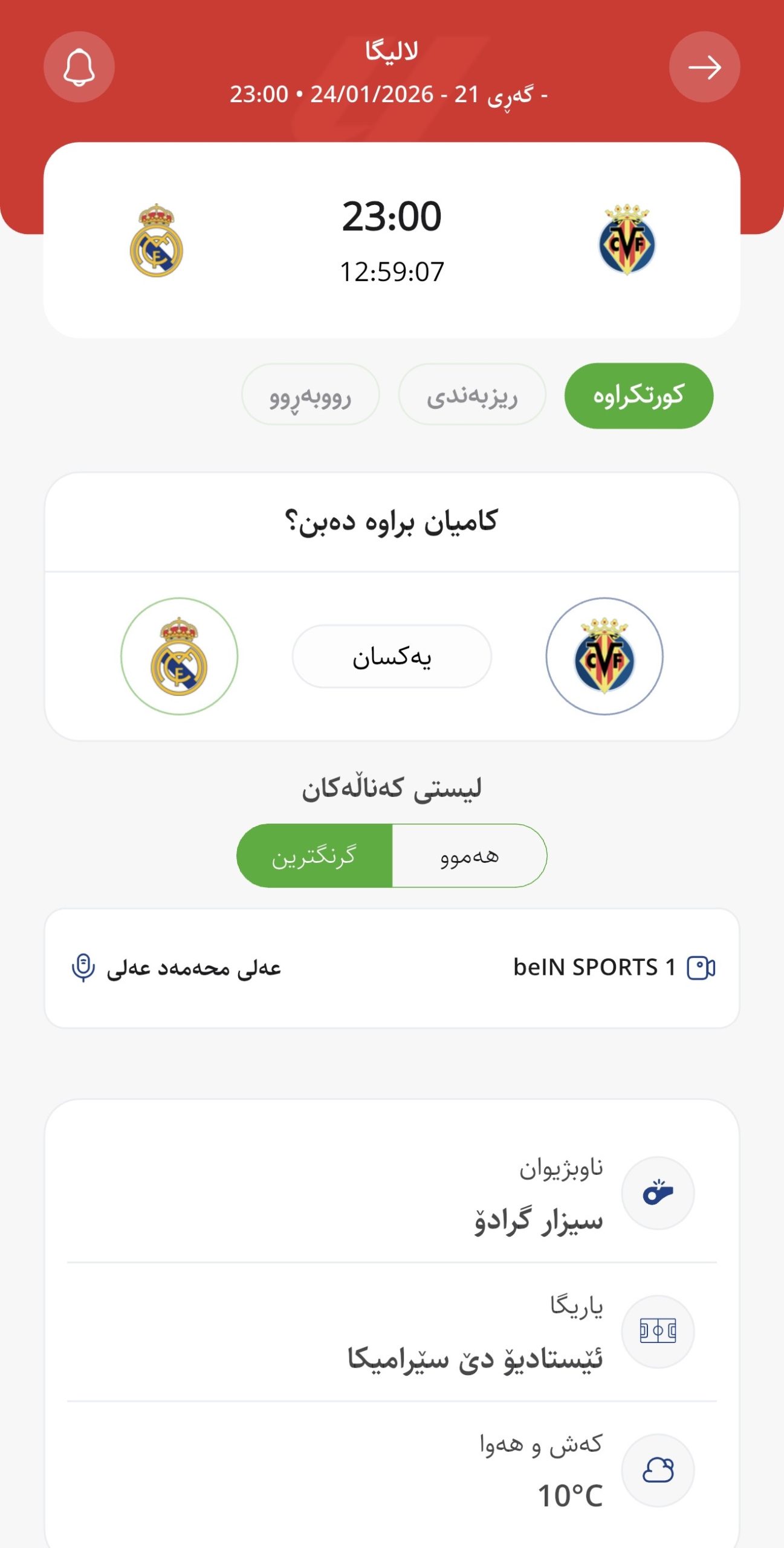 پریڤیوی یاریی ڤیاڕیال V ریال مەدرید؛ دوا هەواڵ و پێكهاتەی پێشبینیكراو