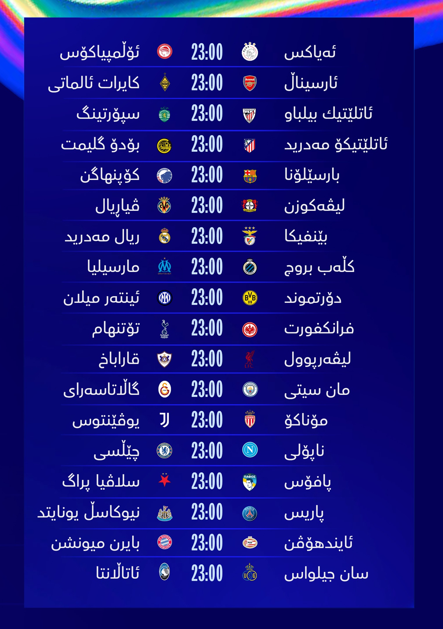لە چامپیۆنزلیگ تاوەکو ئێستا چارەنووسی شەش یانە یەکلایی بووەتەوە، ئارسیناڵ و بایرن میونشن لەنێو هەشت یانەکەی سەرەتا دەگەنە قۆناغی داهاتوو، چوار یانەکەی خوارووی ریزبەندیش کە ئینتراخت فرانکفورت، سلاڤیا پراگ، ڤیاڕیاڵ و کایرات ئالماتین، ماڵئاوایی لە پاڵەوانییەتییەکە دەکەن،