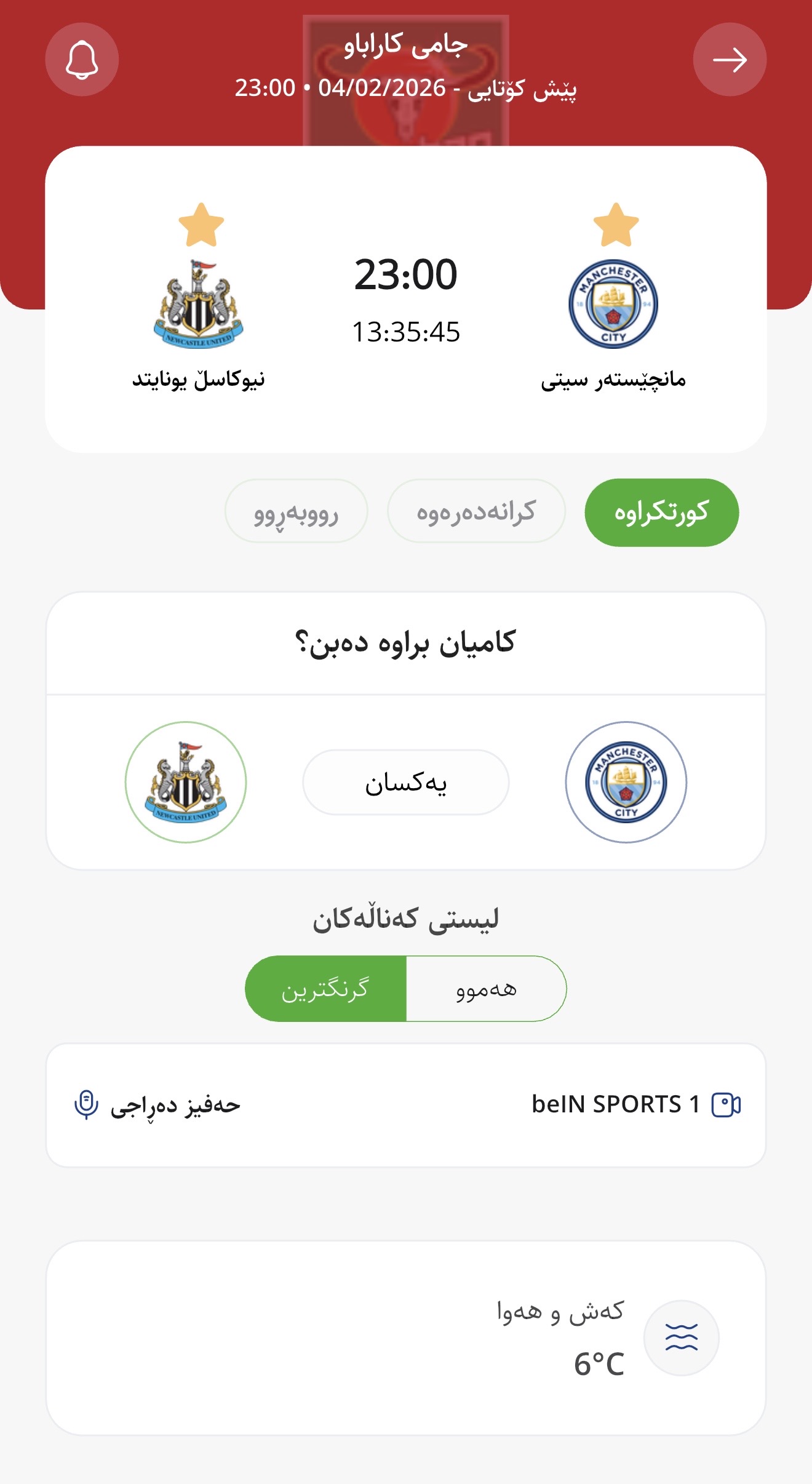 وابڕیارە ئەمڕۆ چوارشەممە كاتژمێر 23:00 بە كاتی كوردستان مانچێستەر سیتی لە یاریگای ئیتیحادی تایبەت بە خۆی میوانداری نیوكاسڵ بكات، لە میانی یاریی گەڕانەوەی قۆناخی پێش كۆتایی جامی كاراباو.