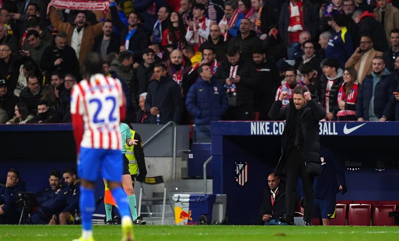 راهێنەرەکەی ئاتلێتیکۆ راستەوخۆ دوای گۆڵی سێیەمی یانەکەی 3 پەنجەی دەستی راستی بەرزکردووەتەوە، لەو ساتەشدا ئەستێرە لاوەکەی بارسێلۆنا لێیەوە نزیکە.