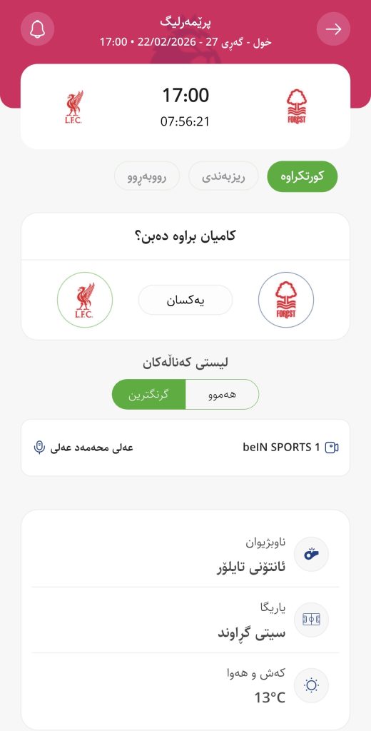 وا بڕیارە ئەمڕۆ یەكشەممە كاتژمێر 17:00 بە كاتی هەولێر نۆتینگهام لە یاریگای سیتی گڕاوندی تایبەت بە خۆی میوانداری لیڤەرپوول بكات، لە میانی یارییەكانی گەڕی 27 پرێمەرلیگ.