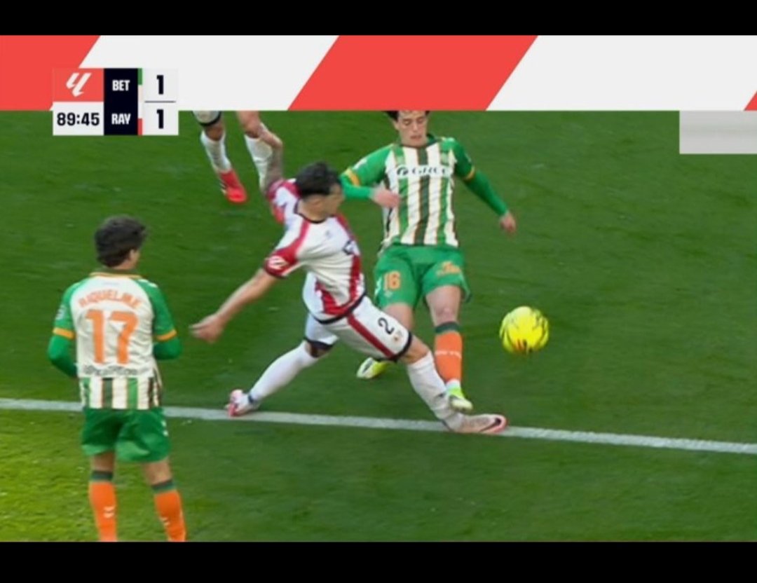 باوەڕمان وایە ئەم کردەیە مشتومڕ دروست دەکات. پێویستە جیاوازی لەنیوان تۆپی لەدەستچوو و دۆخێک بکەین کە یاریزانێک کۆنتڕۆڵی تۆپەکەی کردووە و رکابەرێک هێرش دەکاتە سەر بۆشایی سرووشتیی تۆپ هەڵگر. یاریزانێکی ریال بێتیس خۆی دەگەیەنێتە تۆپێکی لەدەستچوو، بەرگریکارەکە بە هێزێکی زۆرەوە رووبەڕووی بووەوە کە بە ئاشکرا مەترسی پێکان بۆ رکابەرەکەی هەبوو. لیژنەکە ئەم کاریگەرییە بە فاوڵێکی مەترسیدار دادەنێت و بیری هەمووانی دەخاتەوە کە گرنگ نییە کێ یەکەمجار بەرکەوتنی لەگەڵ تۆپەکە دەبێت، سەرپێچیکارەکە دەبوو کارتی سووری بەڕوودا بەرز بکرێتەوە.