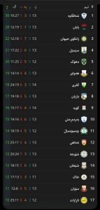 ریزبەندی یانەکان دوای گەڕی 14