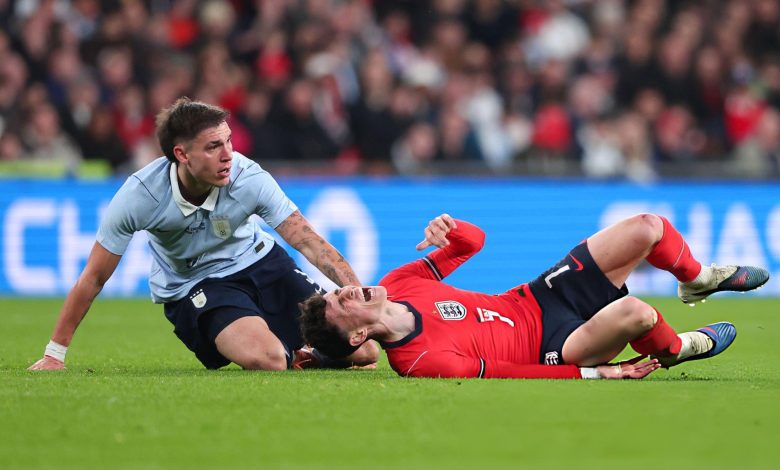 ئابڕووچوون؛ ئوگارتی بەرامبەر ئینگلتەرا دوو کارتی زەردی وەردەگرێت و ناکرێتە دەرەوە