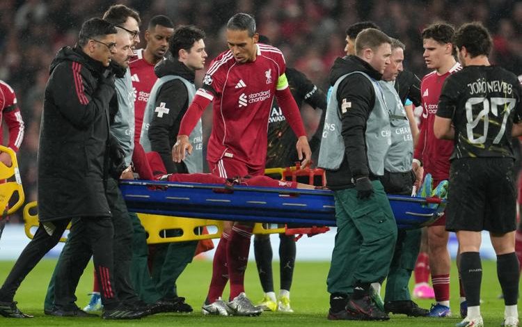 Ekitike was consoled by PSG and Liverpool players as he was stretchered off the pitch after suffering a non-contact leg injury.
