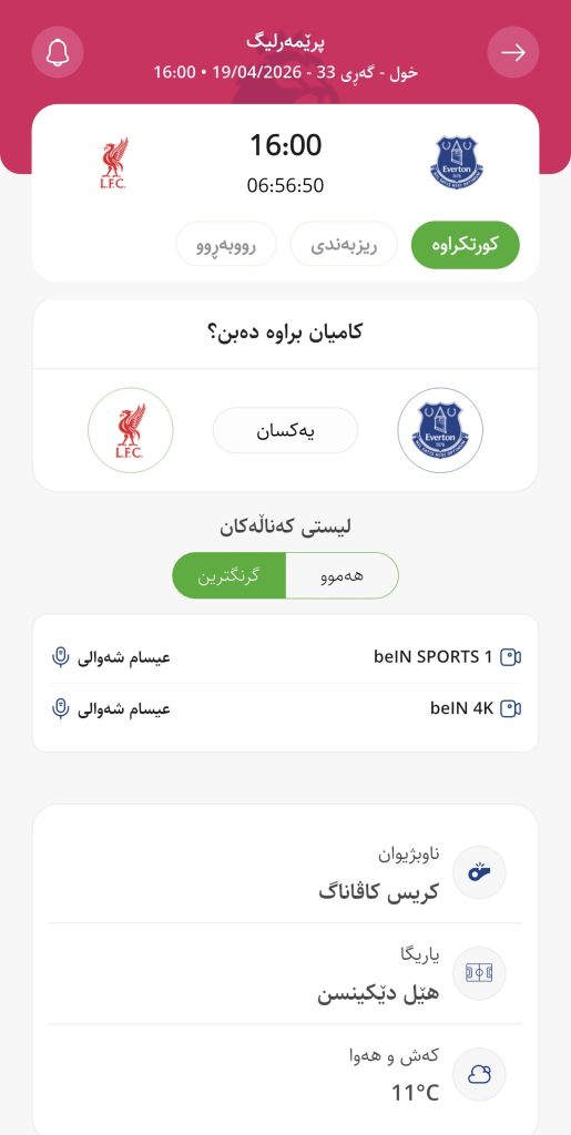 وابڕیارە ئەمڕۆ یەكشەممە كاتژمێر 16:00 بەكاتی هەولێر ئێڤەرتن لە یاریگای هێل دێكینسنی تایبەت بە خۆی میوانداری لیڤەرپوول بكات، لە میانی یارییەكانی گەڕی 33 پرێمەرلیگ.