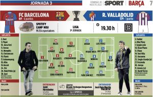 وا بڕیارە ئەمڕۆ یەكشەممە كاتژمێر 20:30 بە كاتی كوردستان بارسێلۆنا لە یاریگای سپۆتیفای كامپ نۆوی تایبەت بە خۆی میوانداری ڤایادۆلید بكات لە میانەی یاریەكانی هەفتەی سێیەمی خولی ئیسپانیا.