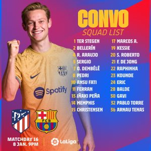 چاڤی هێرناندێزی ئیسپانی و ڕاهێنەری یانەی بارسێلۆنای هەمان وڵات لیستی یاریزانە بانگهێشتكراوەكانی یانەكەی بۆ یاریەكەیان بەرامبەر ئەتلەتیكۆ مەدرید بڵاوكردەوە.
