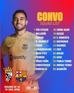 لیستی یاریزانە بانگهێشتكراوەكانی بارسێلۆنا بۆ یاریەكەیان بەرامبەر سیوتا