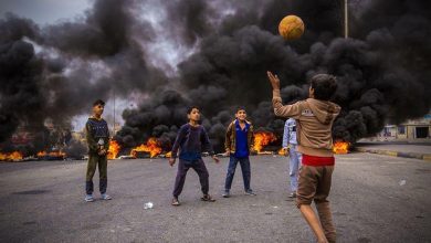 خۆپیشاندانەکانی عێراق درێژەی هەیە و وێنەیەک سەرنجی میدیا وەرزشییەکان رادەکێشیت.لە بەسڕە چەند منداڵێک لەنێو گڕی تایەی سووتاوی خۆپیشاندەکانی عێراق لە…