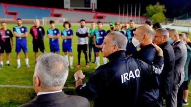 بە وێنە: سەرەکوەزیرانی عێراق لە یاریگای شەعب و چەند بەڵێنێکی گەورە بە هەڵبژاردەی شێرەکانی ڕافیدەین